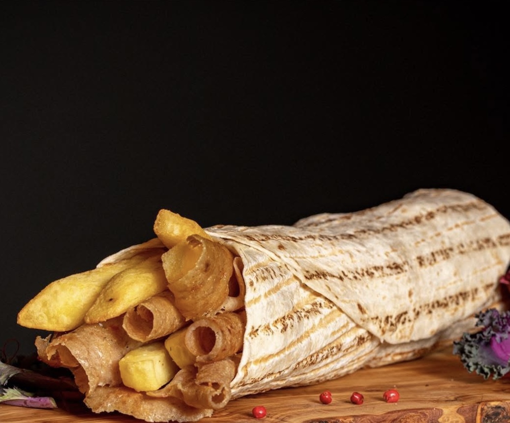 tortilla, mięso, grillowany bekon, mix serów, jalapeno, sałata, pomidor, ogórek, autorskie sosy