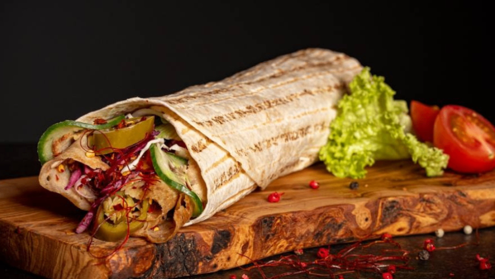 tortilla, mięso, grillowany bekon, mix serów, jalapeno, sałata, pomidor, ogórek, autorskie sosy